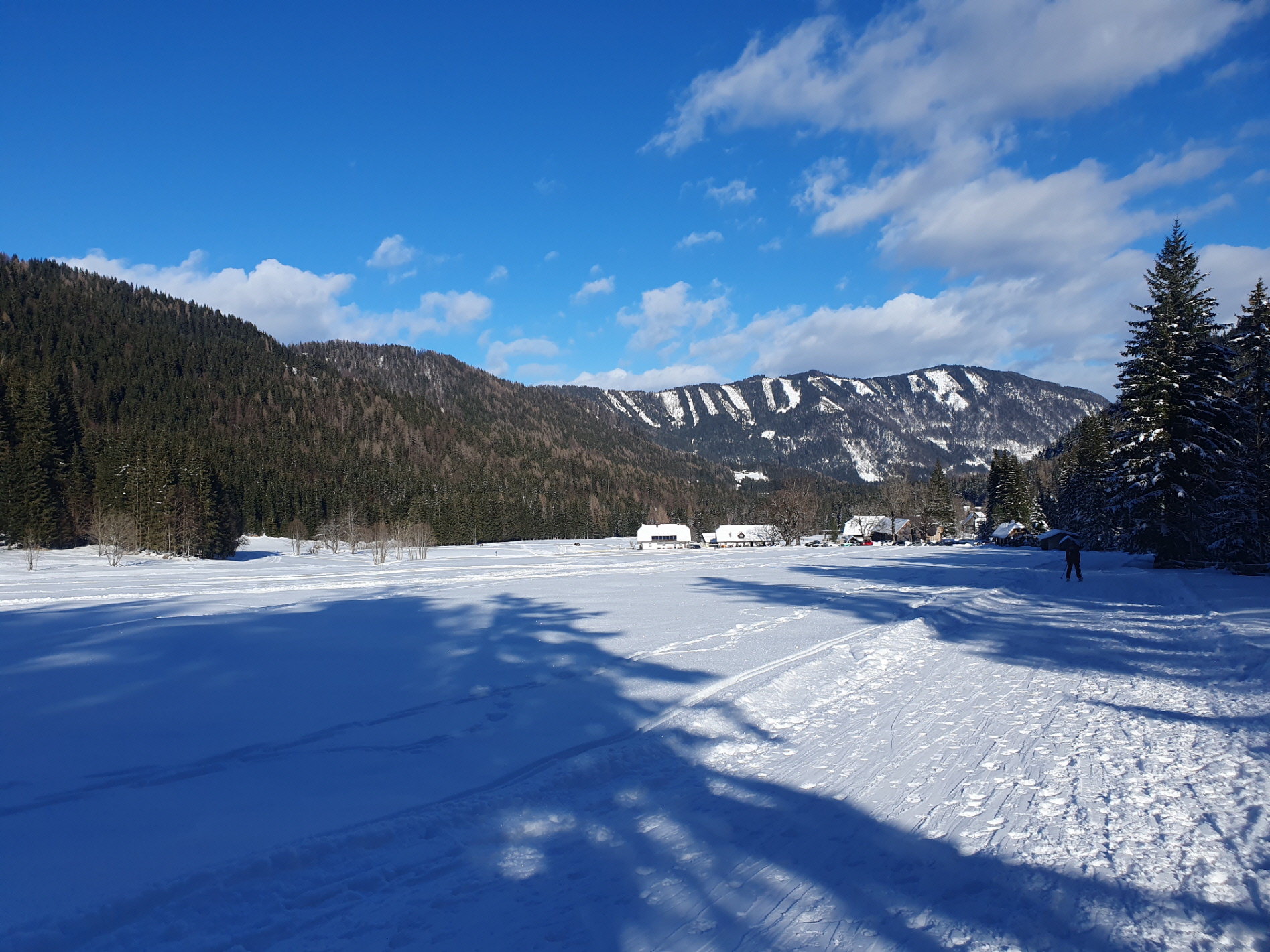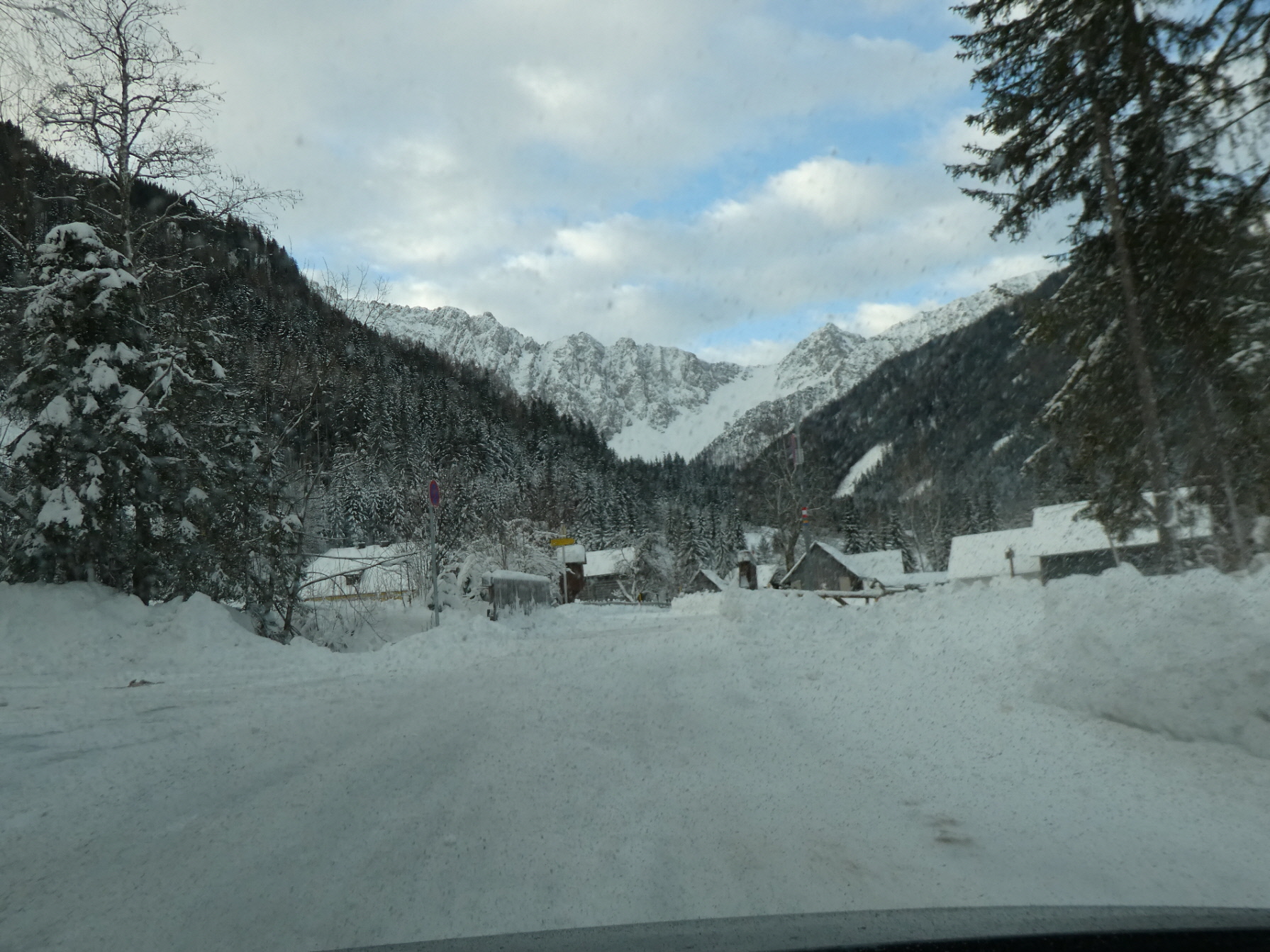 An der Staatsgrenze zu Slowenien ist das letzte Niederschlagsereignis am intensivsten ausgefallen. Zudem war für den heutigen Tag nur für den Süden der Republik halbwegs schönes Wetter prognostiziert. Daher haben wir eine längere Anreise eingeplant, um wieder einmal vom Bodental aus auf Tour zu gehen. Und diese Anreise hatte es – zumindest für unseren Fahrer Gerhard – in sich. Nachdem Blitzeis die halbe Republik lahmgelegt hatte, hat uns bei der deshalb temporeduzierten Anfahrt sowohl im Lavanttal als auch im Bereich Klagenfurt noch zweimal ein Eisregen erwischt. Die Straße in Richtung Loiblpass sowie auch weiter hinein ins Bodental war aber problemlos befahrbar.