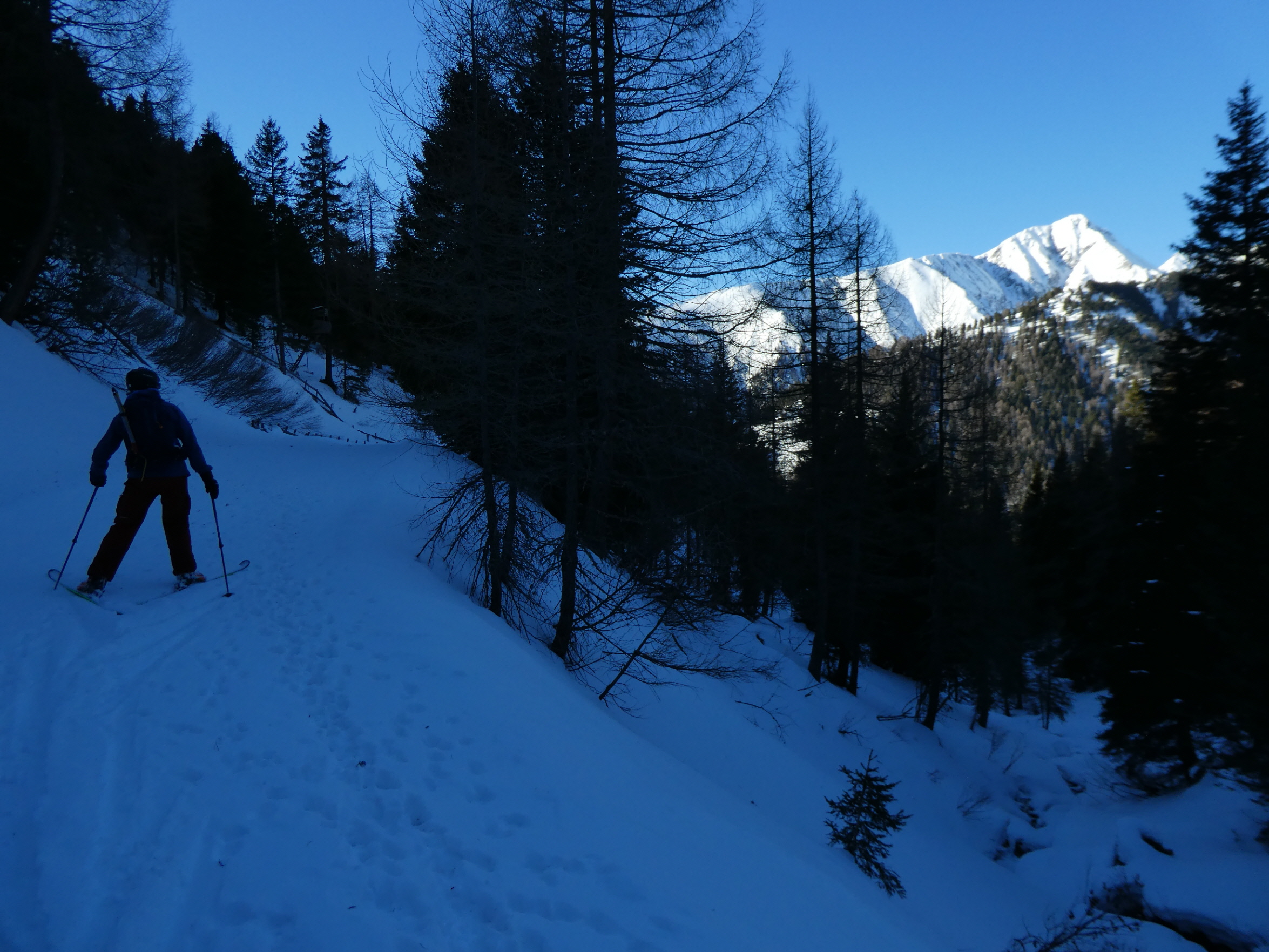 Ein verlängertes Wochenende in der Krakau haben wir dazu genutzt, uns bei traumhaft schönem Wetter viel an der frischen Luft zu bewegen. Nach einem Familien-Pistenskitag am Tockneralmlift sind Chris und ich wieder einmal auf die Tockneralm aufgestiegen. Als Ausgangspunkt haben wir diesmal die Klausnerberg-Säge gewählt. Von dort sind wir zuerst zur Fuchsgrube und von da weiter entlang des hinlänglich bekannten Weges vieler vorangegangener Touren auf die Alm angestiegen.