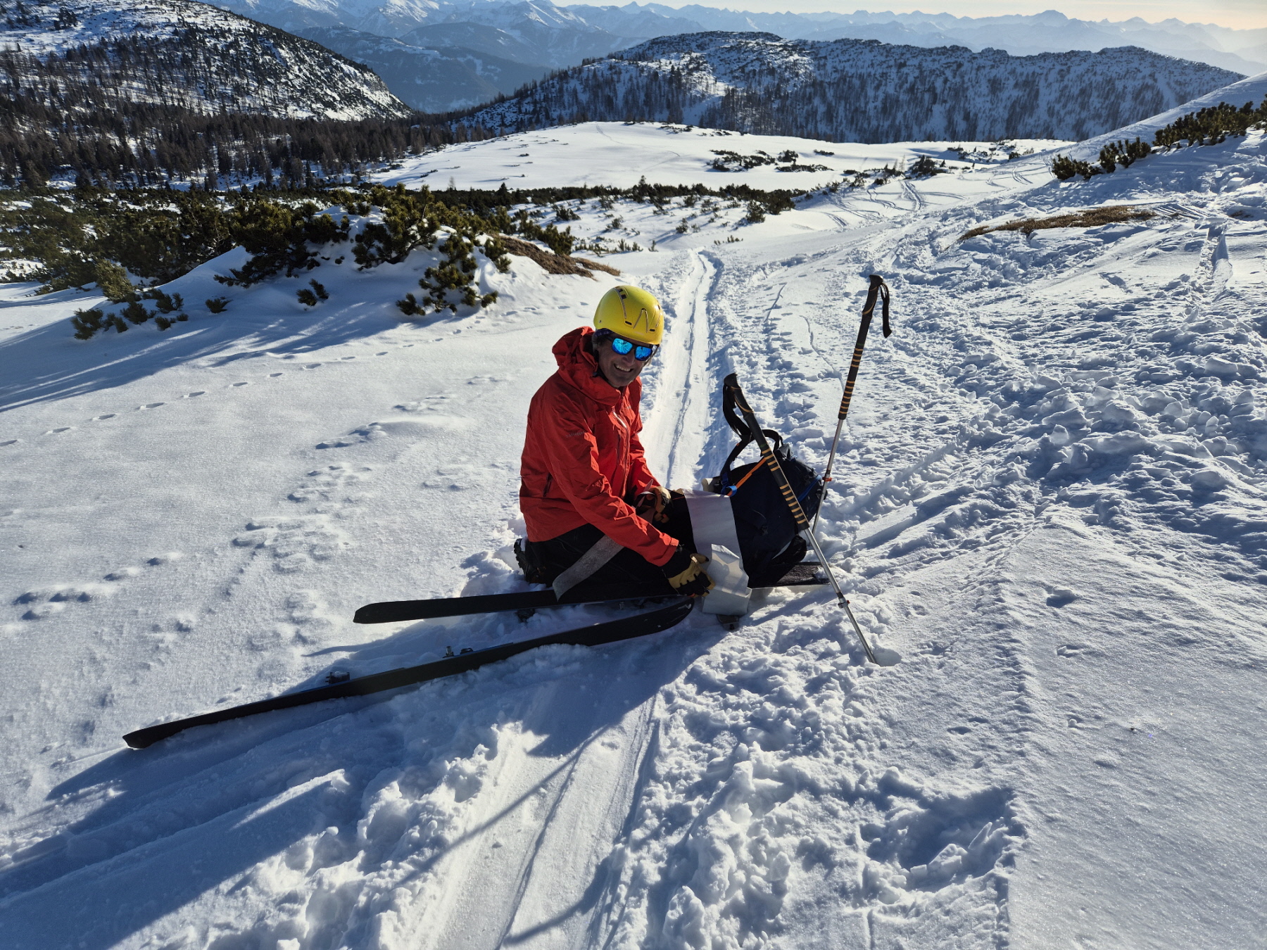 Nach diesem Wochenende mit den katastrophalen Lawinenabgängen in Pusterwald und im Pongau, bei denen gleich sieben Personen zu Tode gekommen sind, war die Entscheidung, trotzdem auf Skitour zu gehen, nicht einfach. Aus unzähligen Medienberichten der letzten Tage erfährt nun auch der Laie, dass trotz der geringen Lawinenwarnstufe 1 versteckte Gefahren lauern können. Dessen waren wir uns schon immer bewusst, haben aber trotzdem unsere heutige Tourenplanung noch einmal extra defensiv angelegt. Die Tour auf den Hochmölbing von Wörschachberg aus ist zwar keine kurze, aber bei der derzeitigen auch dort noch sehr niedrigen Schneelage, birgt der gesamte Tourenverlauf zumindest von der Lawinengefahr her so gut wie kein Gefahrenpotential. Zudem haben wir darauf gehofft, dass die südseitig ausgerichtete Flanke vom Mittermölbing – so wie auch schon am Samstag bei der Abfahrt von Freunden – auffirnen könnte.