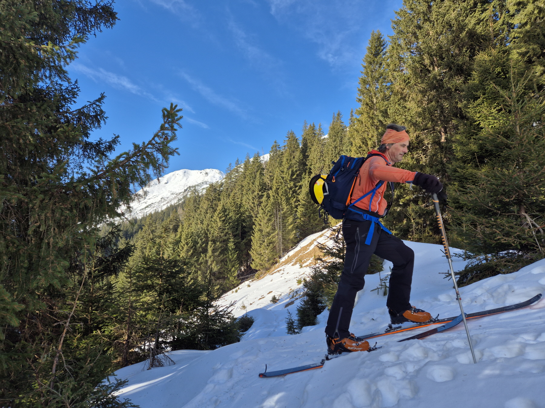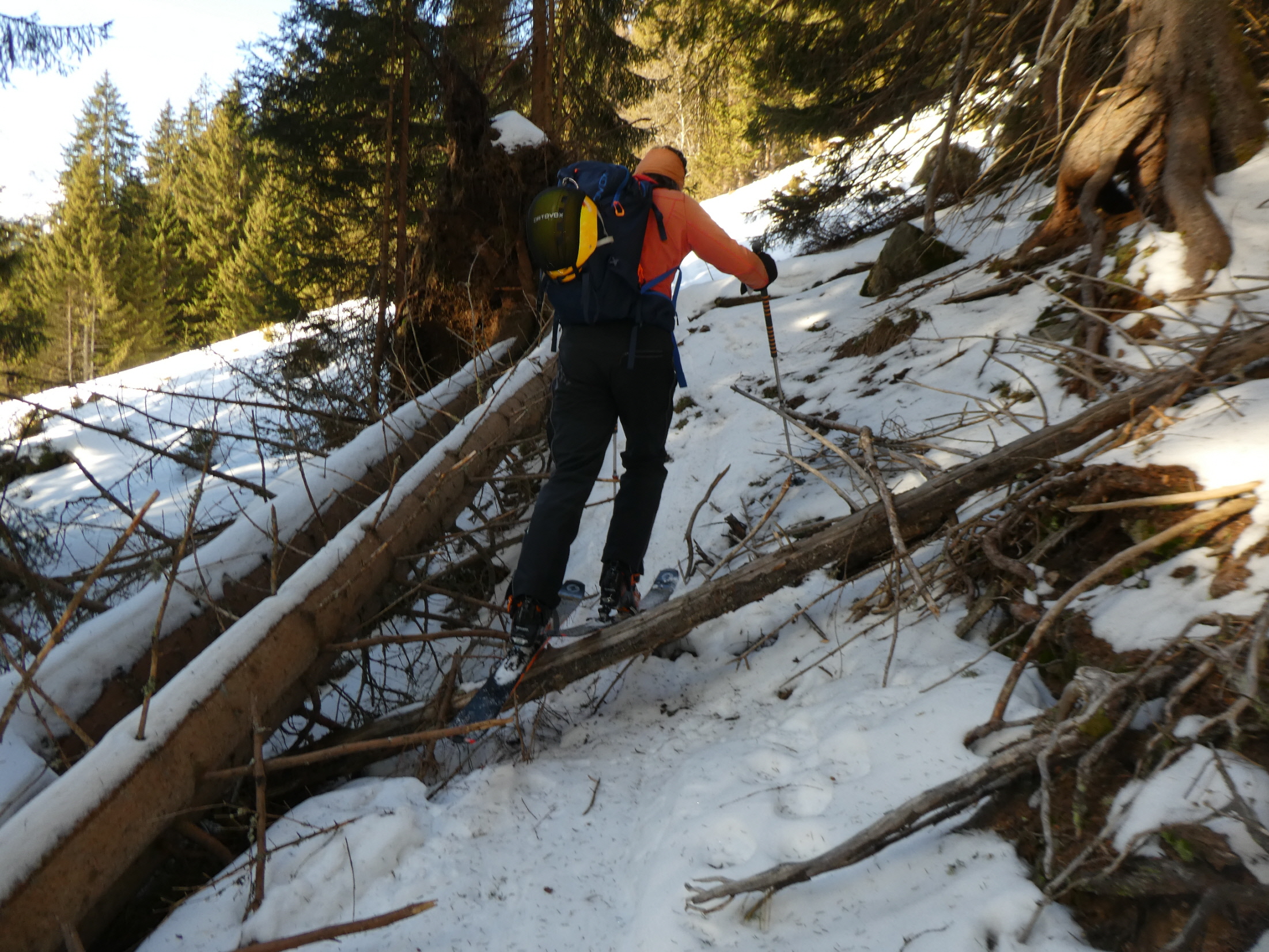 Stellenweise ging es dabei etwas holzig zu. Mit zunehmender Höhe ist die zwischendurch recht dürftige Schneelage immer besser geworden. In vielen Kehren haben wir Höhe gewonnen.