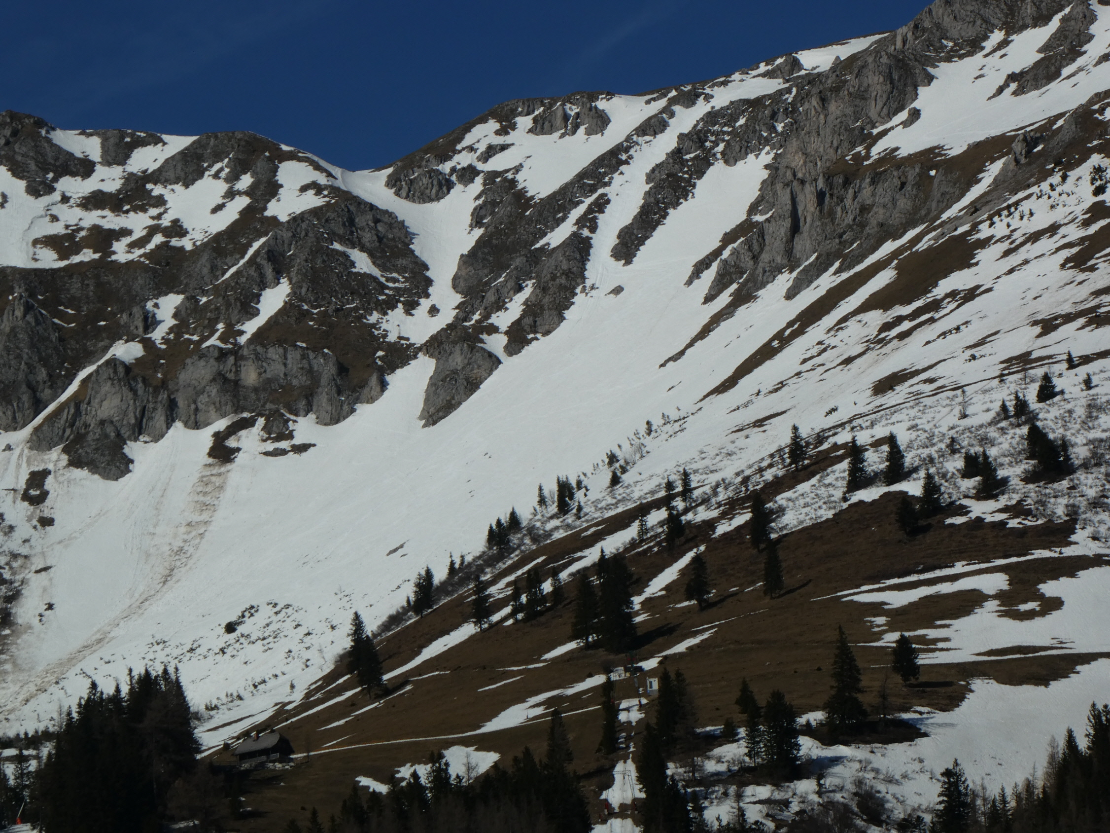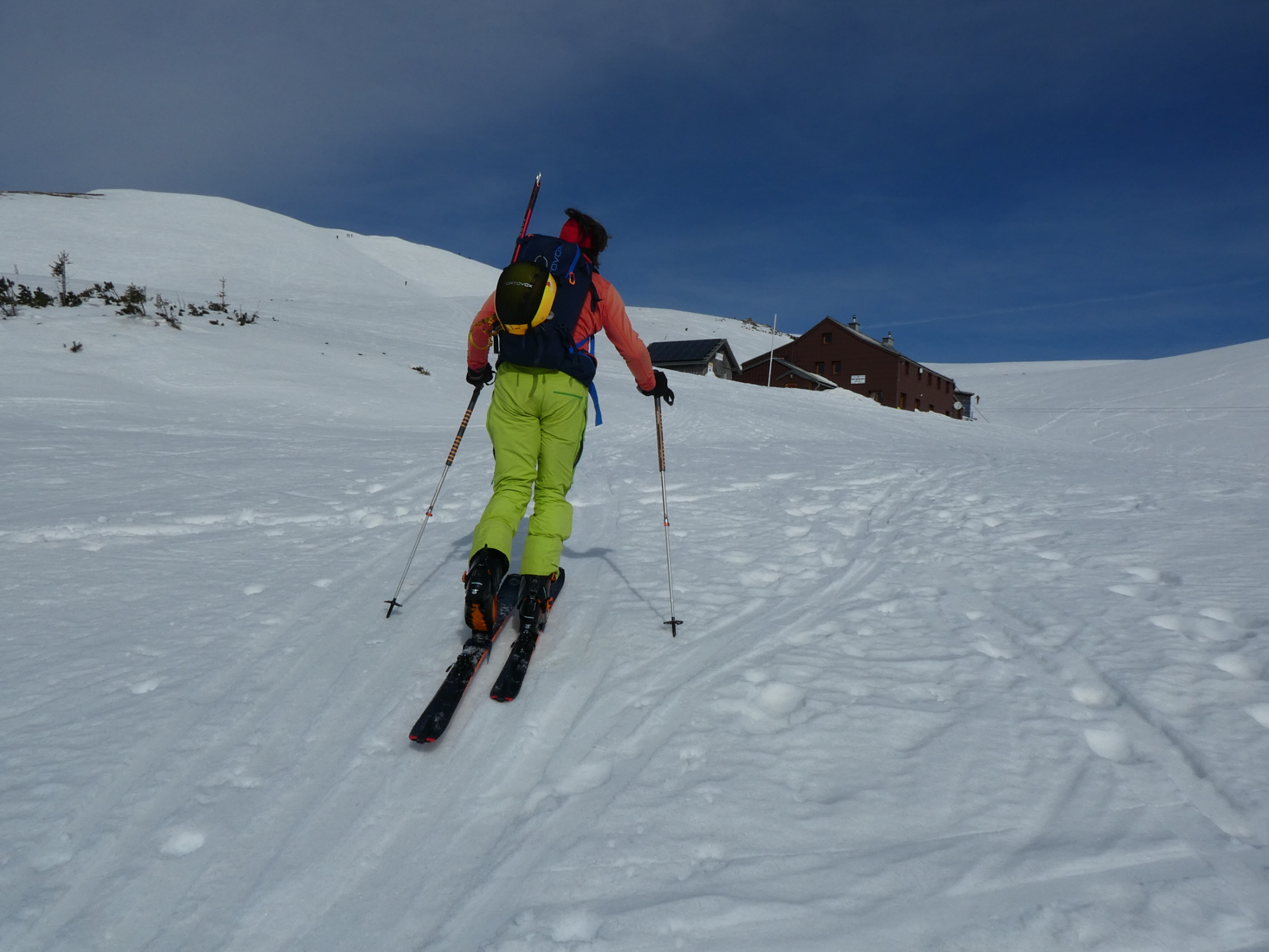 Weil die Verhältnisse am Samstag so gut waren und zudem für den heutigen Tag die Wetterprognose jedenfalls besser war als jene für den Samstag, war das Tourenziel schnell gefunden. Weil mein FC Porto am Vorabend im „O classico“ Benfica Lissabon mit 5:0 deklassiert hatte, ist die Nacht wegen des späten Spielbeginns und der unverzichtbaren Kommunikation mit meinen portugiesischen Freunden im Stadion nach dem Abfpiff kurz geworden. Nichts desto trotz sind wir zur gewohnten Zeit wieder in Richtung Brunnalm losgefahren. Mit der Sonneneinstrahlung sollten die steilen Südrinnen bald einmal auffirnen.