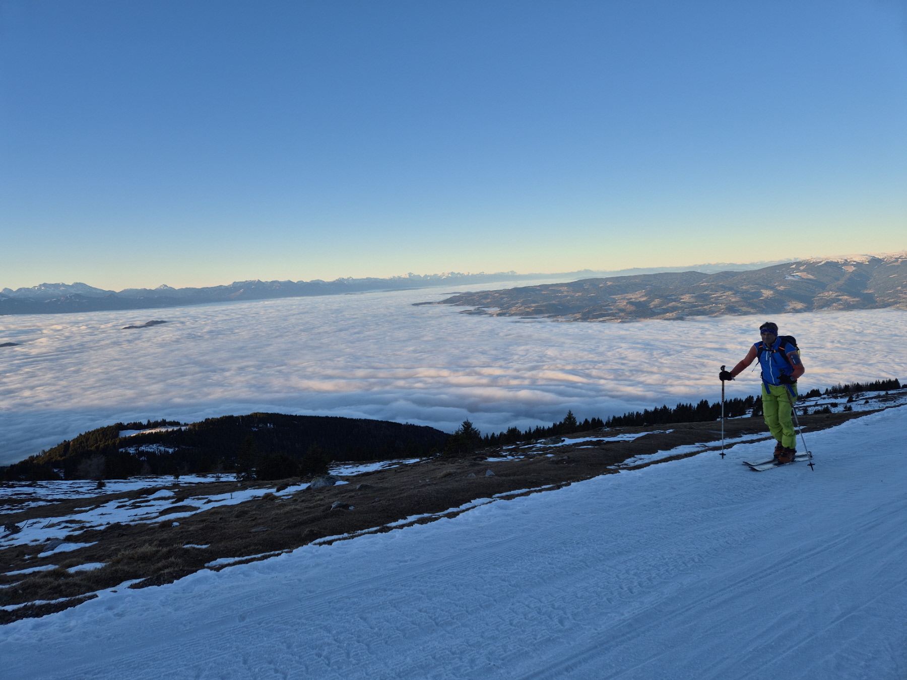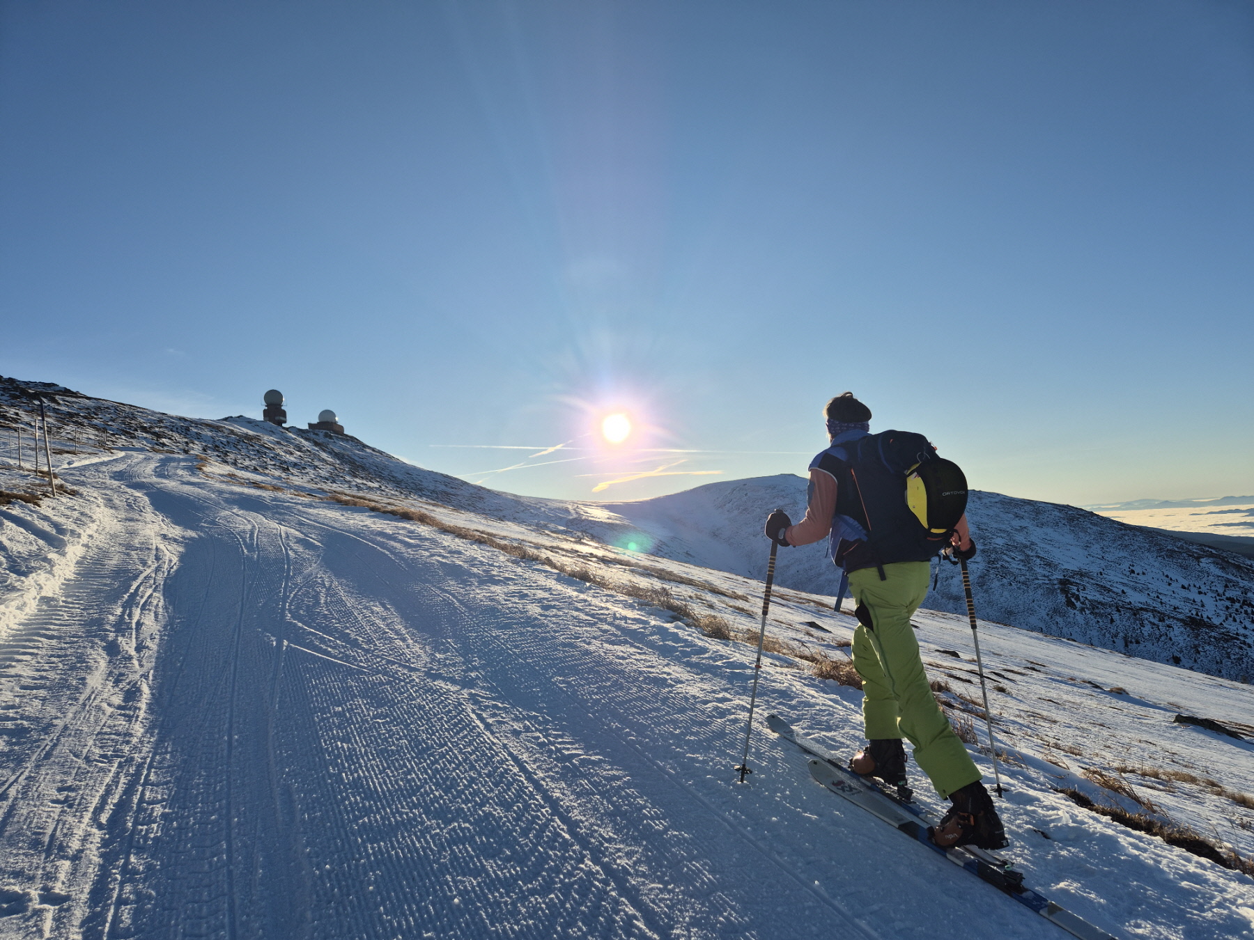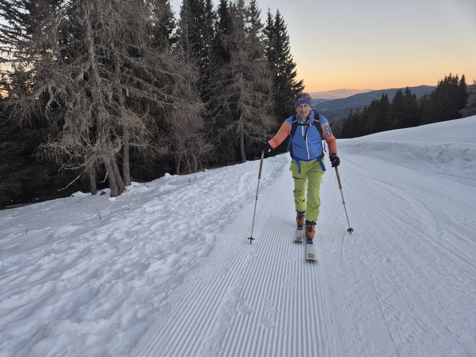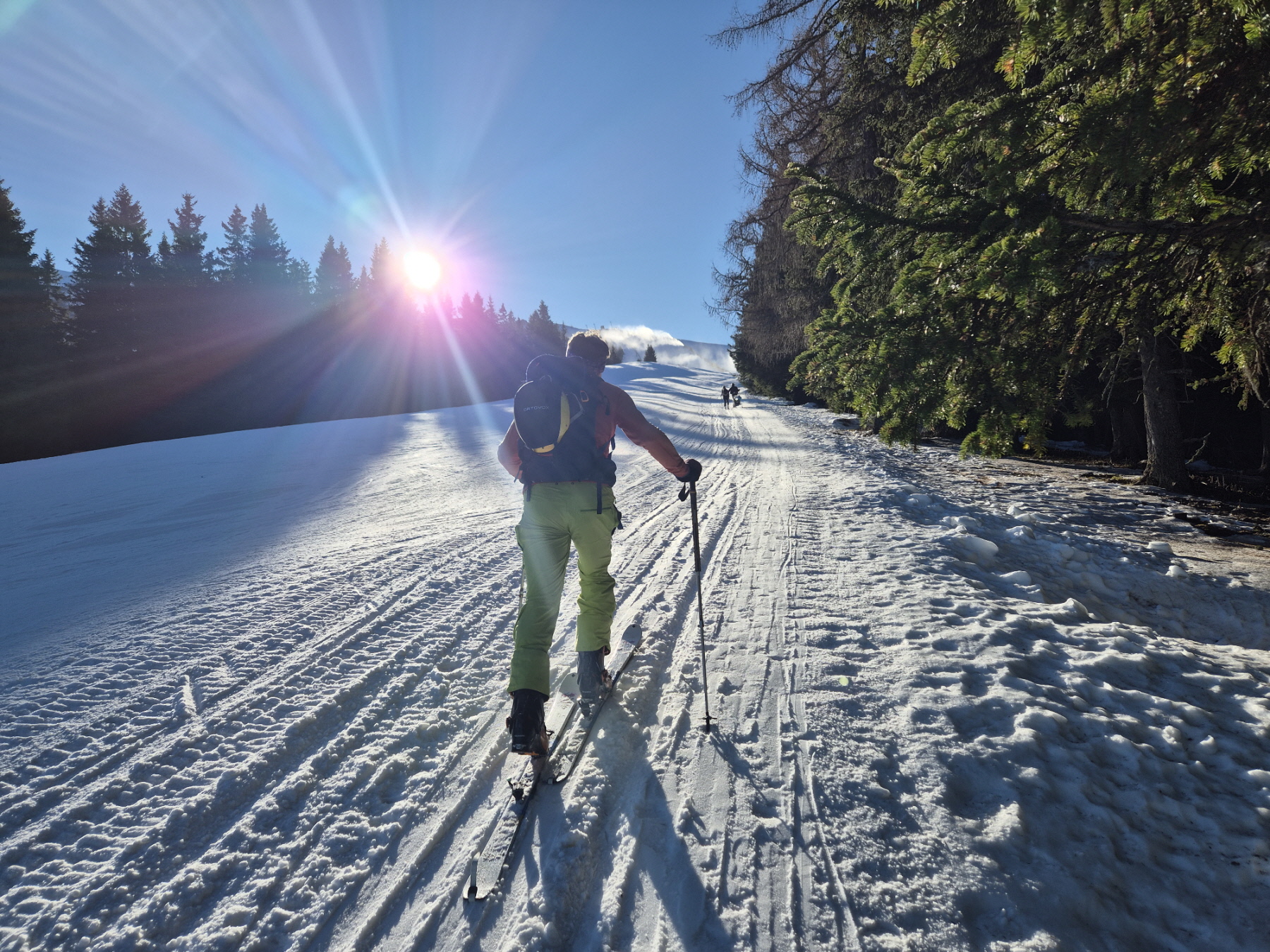Vor drei Tagen bin ich zusammen mit unserem ältesten Enkel Sebastian im Zuge der Sonderfahrten im Rahmen der Eröffnung der Koralmbahn zweimal durch den längsten Bahntunnel Österreichs mit 230 km/h durchgebraust. Heute ging es viel gemächlicher auf Skiern auf den für den Basistunnel namensgebenden Bergstock, der Steiermark und Kärnten trennt. Weil weit und breit keine nennenswerte Naturschneemenge vorhanden ist, ist es diesmal eine reine Pistenskitour geworden. Und dafür, dass man diese ohne Steinkontakt absolvieren kann, ist der Infrastrukturbeitrag von jeweils € 10,- schon gerechtfertigt.
