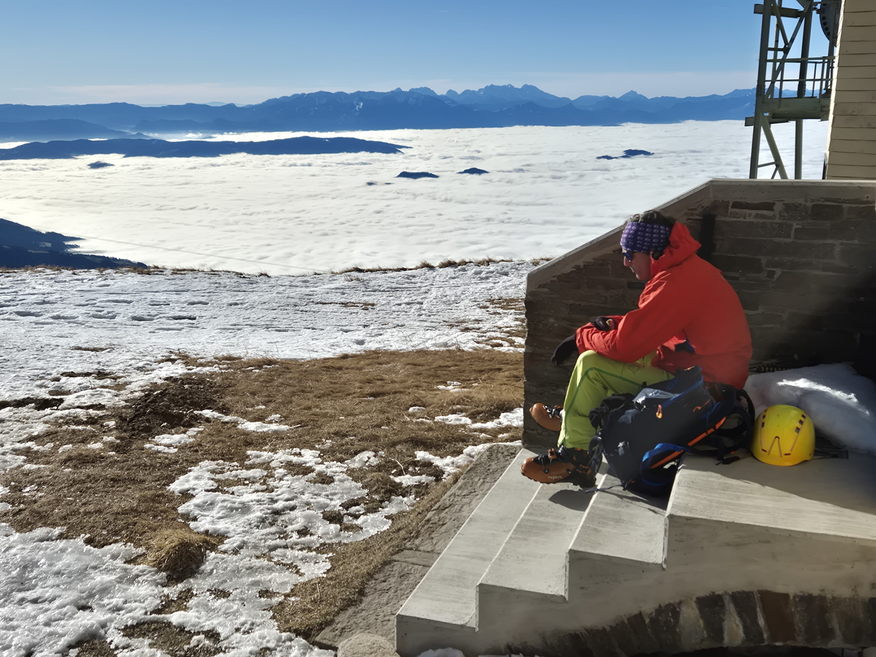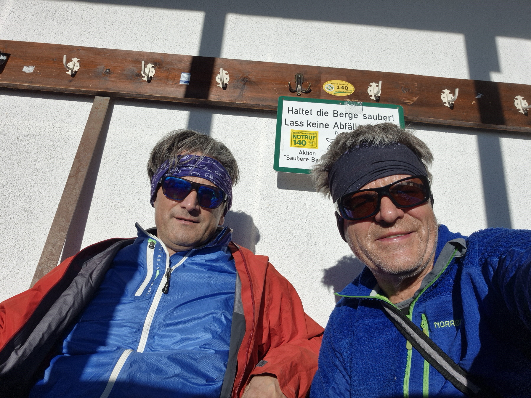 Von Witterungseinflüssen geschützt kann man hier mit dem Luxus einer Sitzbank sehr gemütlich jausnen und für die Abfahrt umrüsten. Diese hat uns danach entlang des Aufstiegsweges sehr flott wieder nach unten geführt.