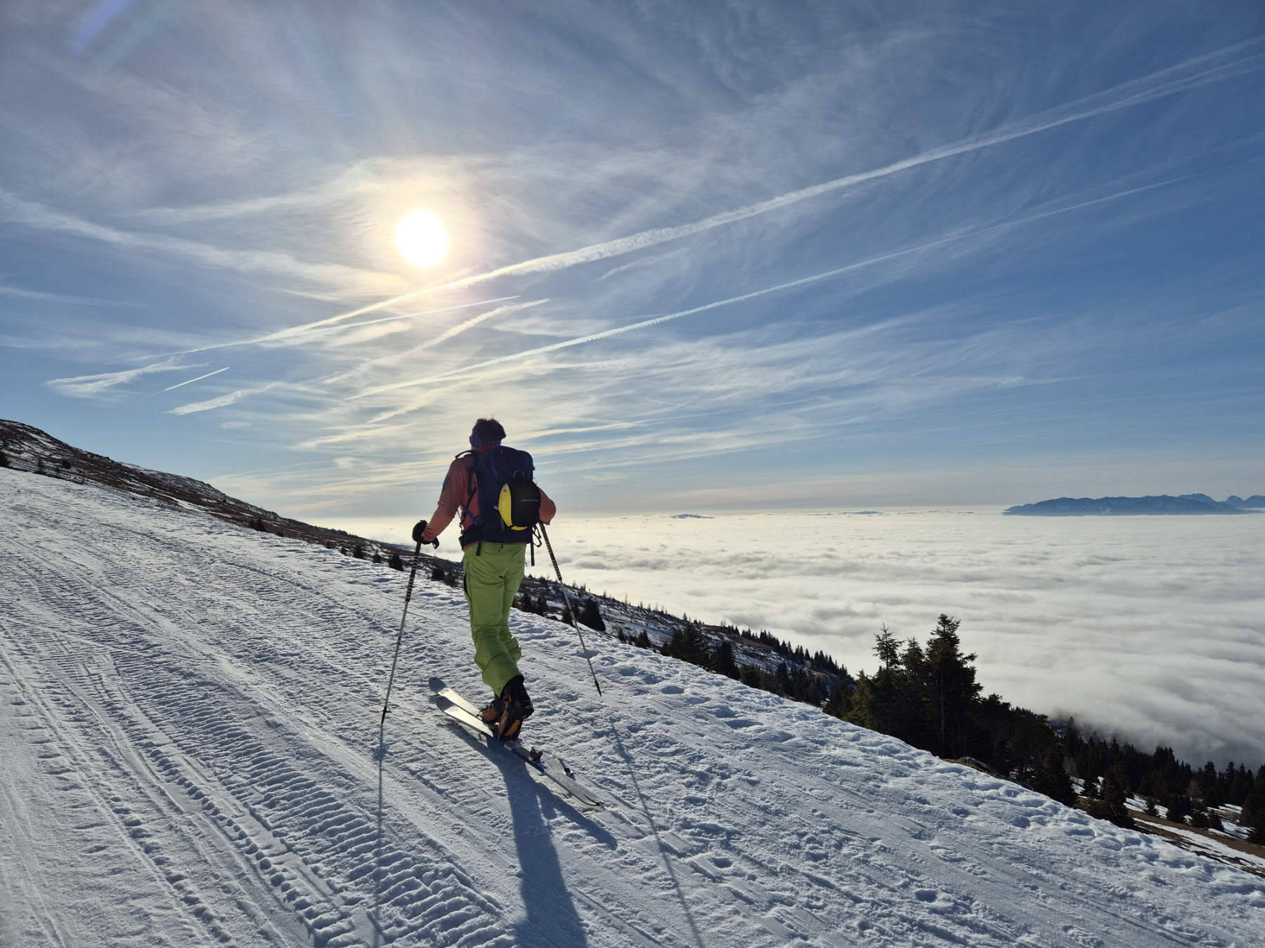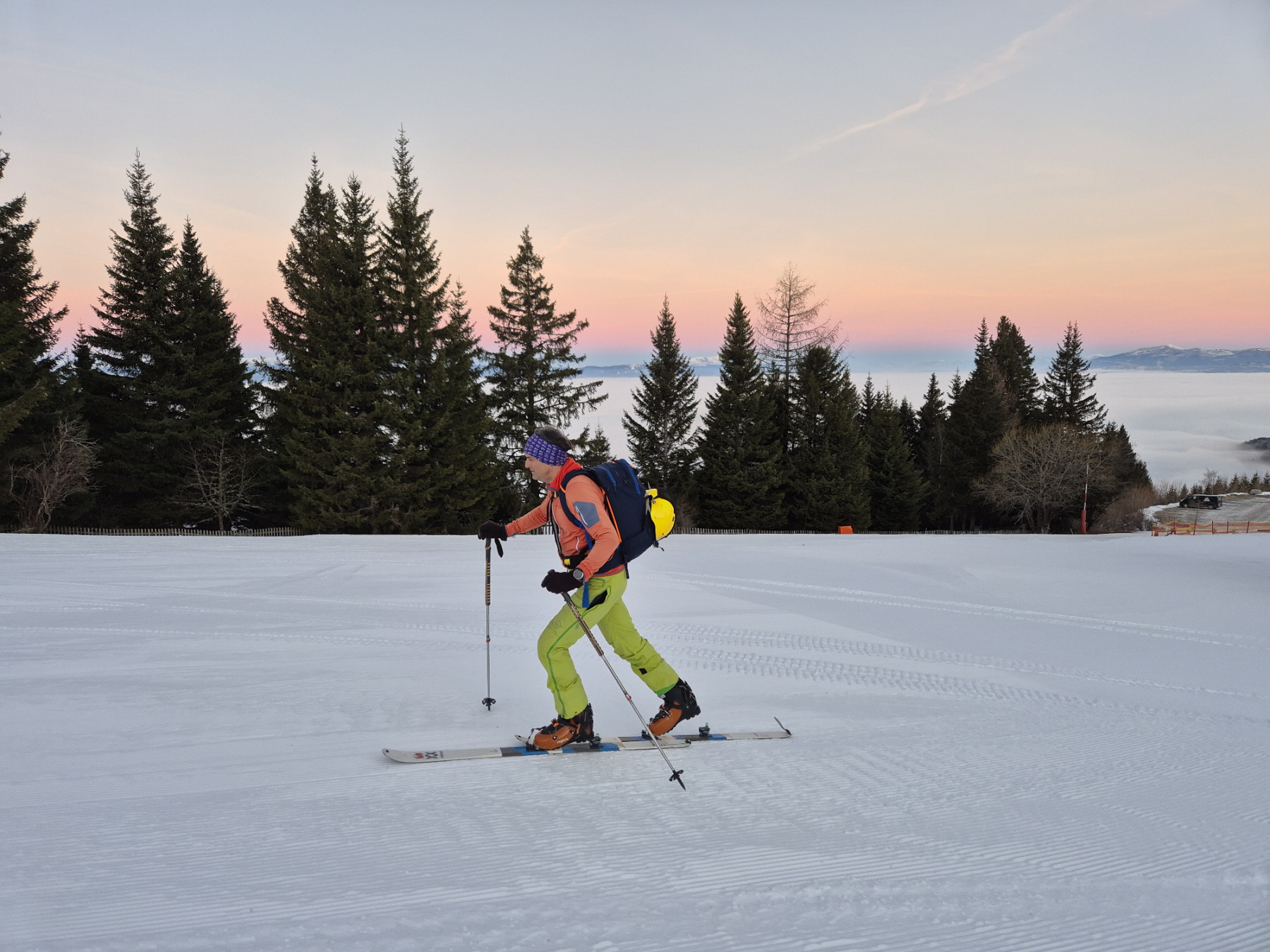 Wenn die Liftgesellschaft mit viel Energieaufwand Maschinenschnee produziert, den wir Skitourengeher dann für die Abfahrt auch links und rechts des sehr schmalen Korridors, den ein ersessener Wanderweg bildet, nutzen, dann sollte uns das auch etwas wert sein. Und wenn wir zu Beginn oder zum Abschluss der Skitour direkt neben dem Parkplatz in der ersten Reihe auch noch eine beheizte Toilette nutzen dürfen, dann ist der Infrastrukturbeitrag auch dafür eine gerechtfertigte Abgeltung.