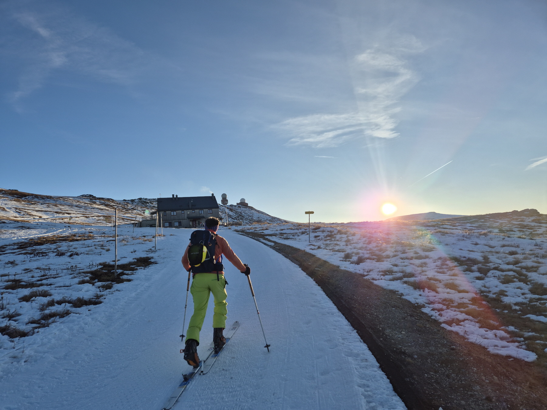 Natürlich haben wir diesen Moment etwas länger ausgekostet und sind danach dafür ziemlich flott entlang der Aufstiegsroute vorbei am Koralpenhaus abgefahren. In der Mitte des Wasserhangs sind wir am Kettenfahrzeug der Hütte, dass dort seinen Geist aufgegeben hatte, vorbeigefahren und danach weiter hinunter bis zum Ausgangspunkt der Tour.