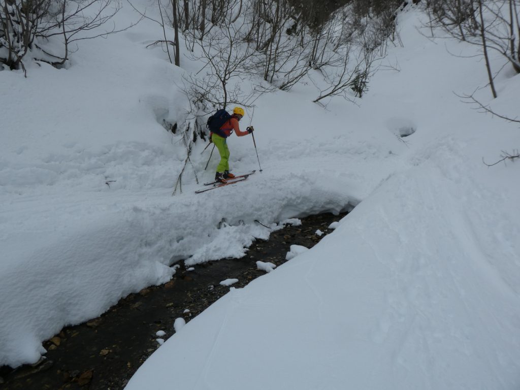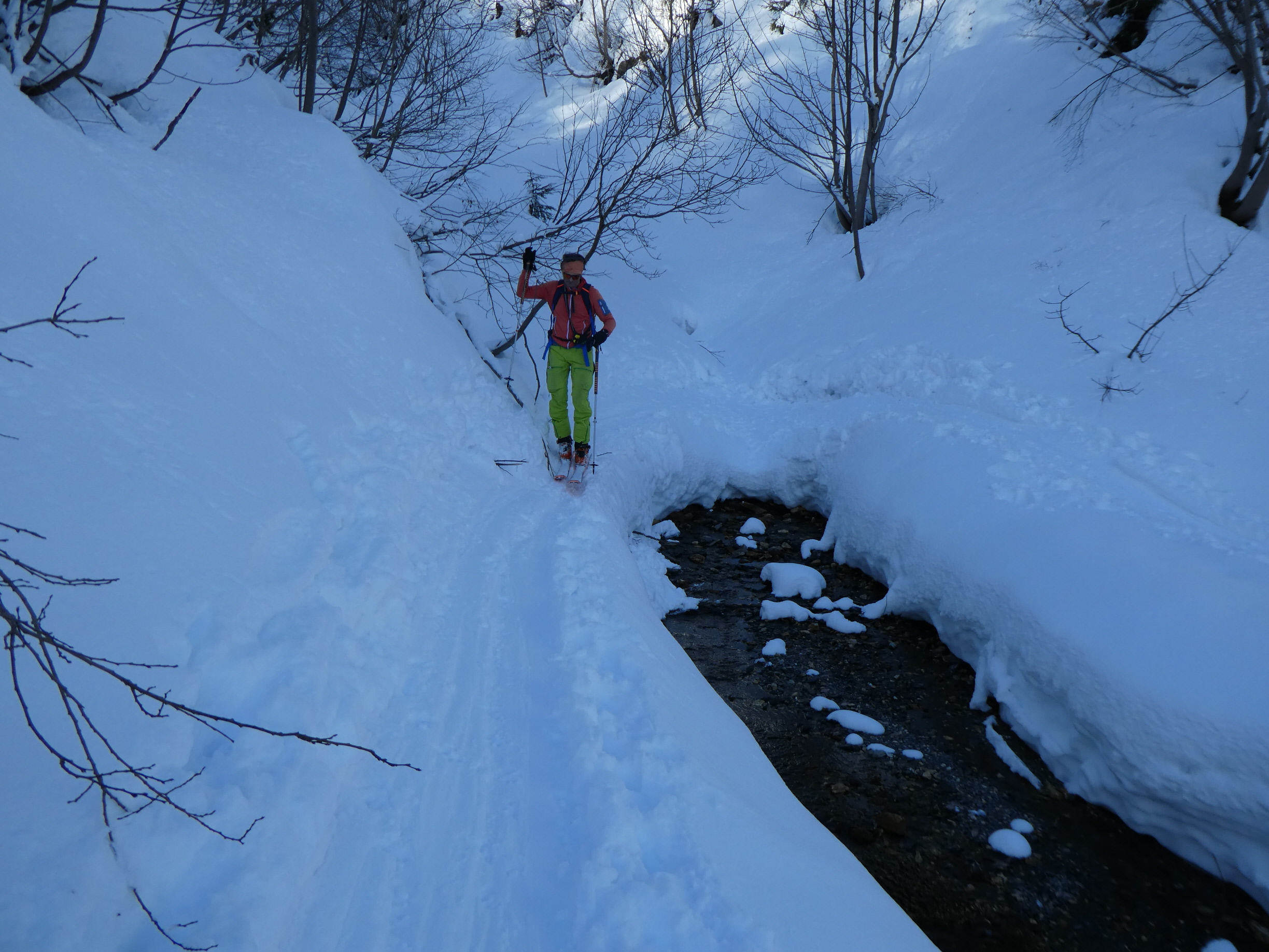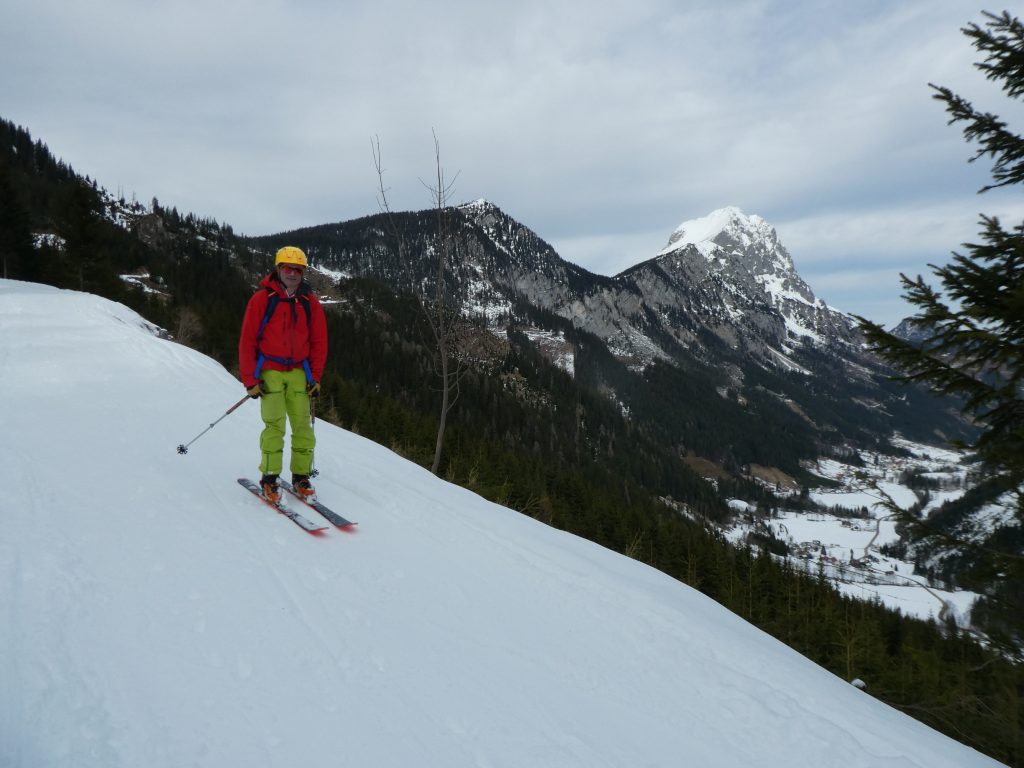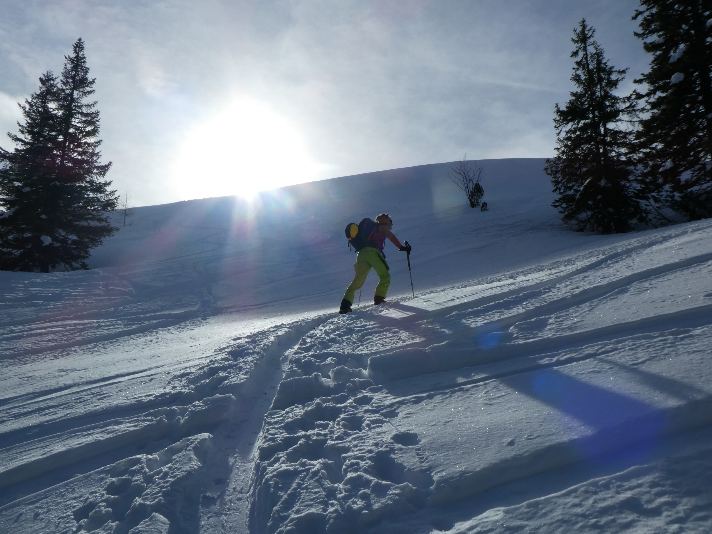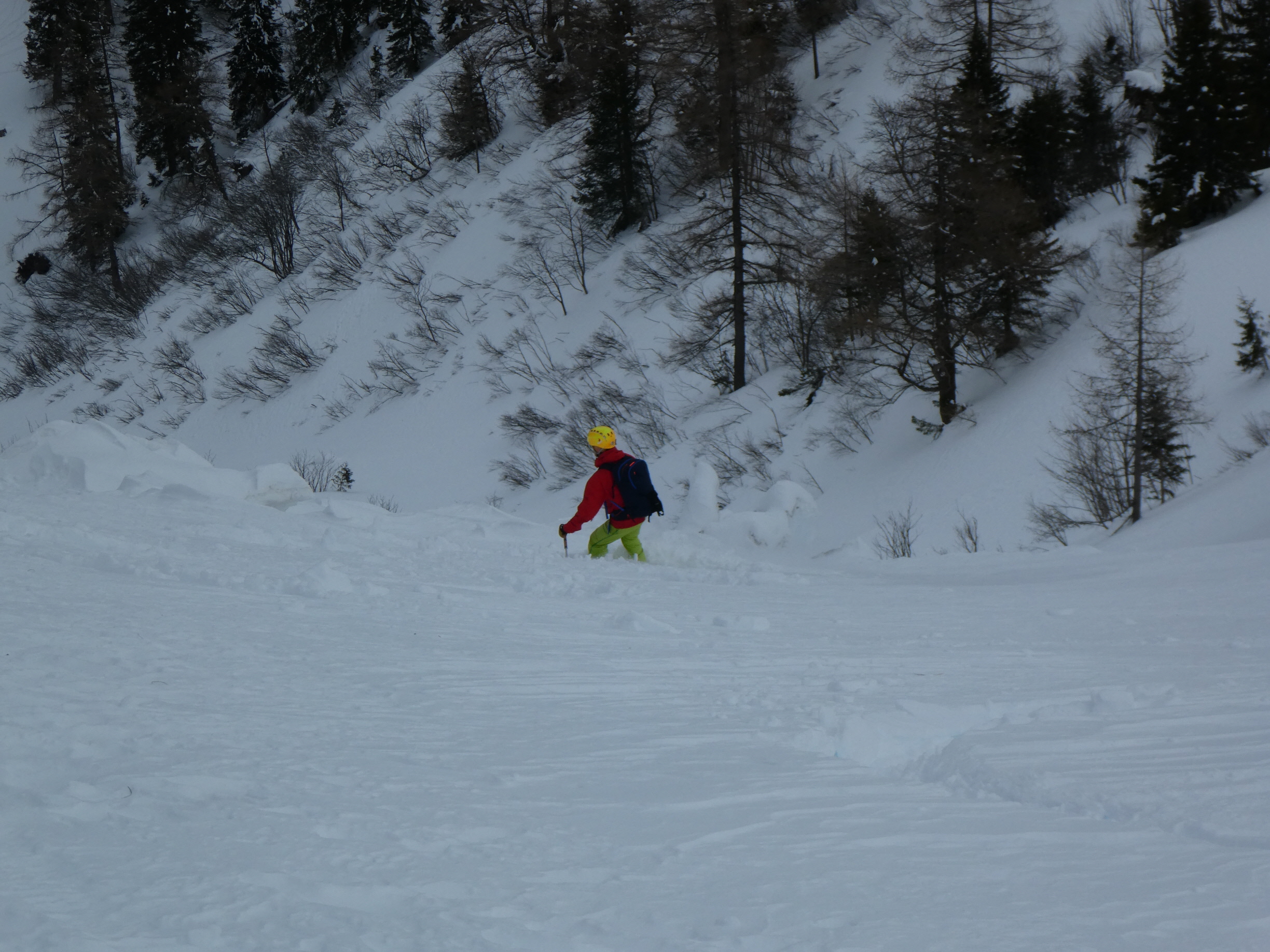Im Lochalpl selbst sind wir wieder auf die Abfahrtsspuren der am Vortag und vereinzelt auch heute schon vor uns Abfahrenden getroffen. Trotzdem hat es hier an der Nordseite noch ein paar unverspurte Flecken im tiefen Pulver auch für uns gegeben.