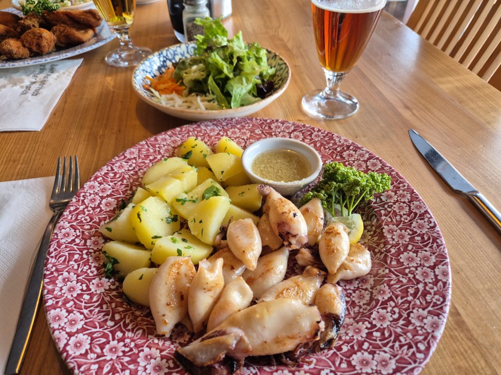Die Fahrt zur kulinarischen Einkehr ist wegen der montags in Tarvis so gut wie flächendeckend geschlossenen Gastronomie etwas länger ausgefallen. In Unterkärnten sind wir dann in dem schon oft besuchten Rasthaus eingekehrt. Ob dem Heinrich meine gegrillten Calamari oder die von Stefan gewählten Backhendlstücke mehr gemundet hätten, wird er mich irgendwann wissen lassen.