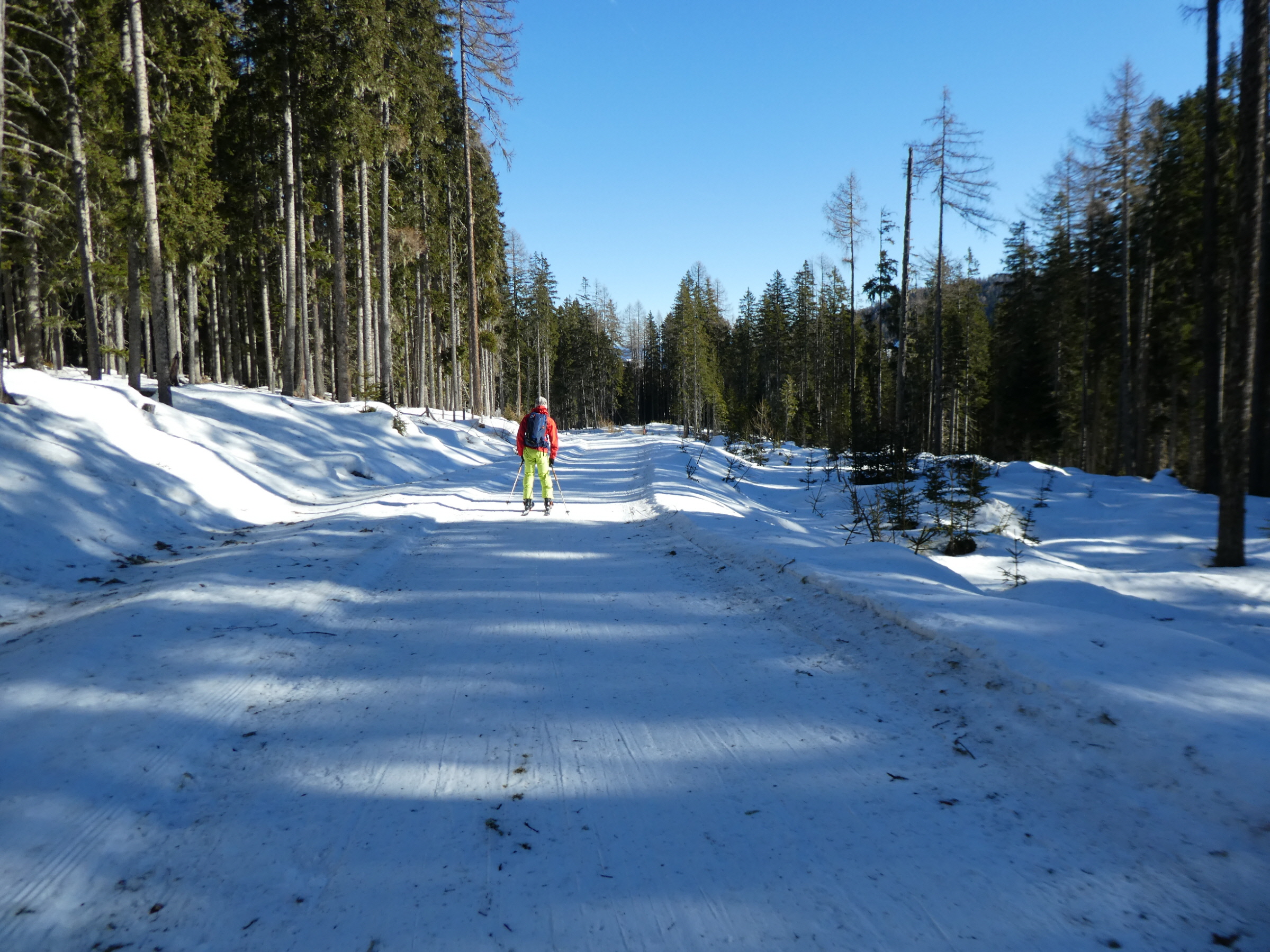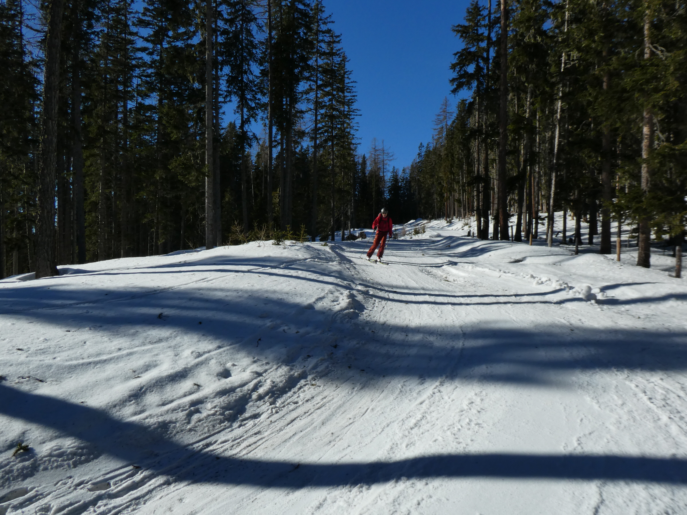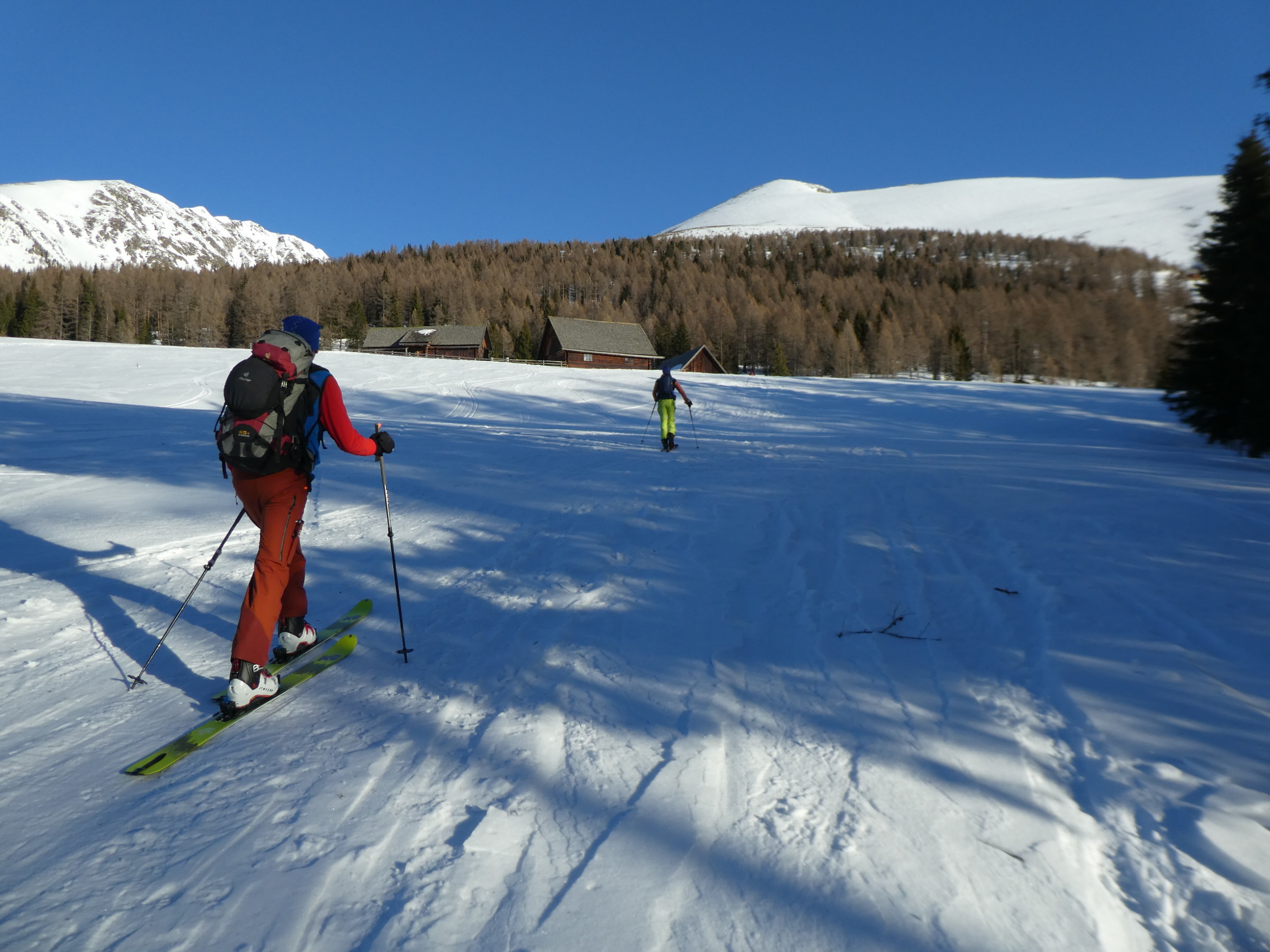 Mit abnehmender Höhe hat dieser irgendwann eine schmierige Konsistenz bekommen und im Bereich der – bei diesen Verhältnissen auch fahrbaren – Rinne ist der Schnee dann firnig geworden. Auch der Bereich danach bis zu den Halterhütten war bestens fahrbar. Nach einer kurzen Abfahrtspause haben wir uns dann in den Weg hineingestellt und sind in flotter Fahrt zurück zum Ausgangspunkt bei der Ludlalm abgefahren.
