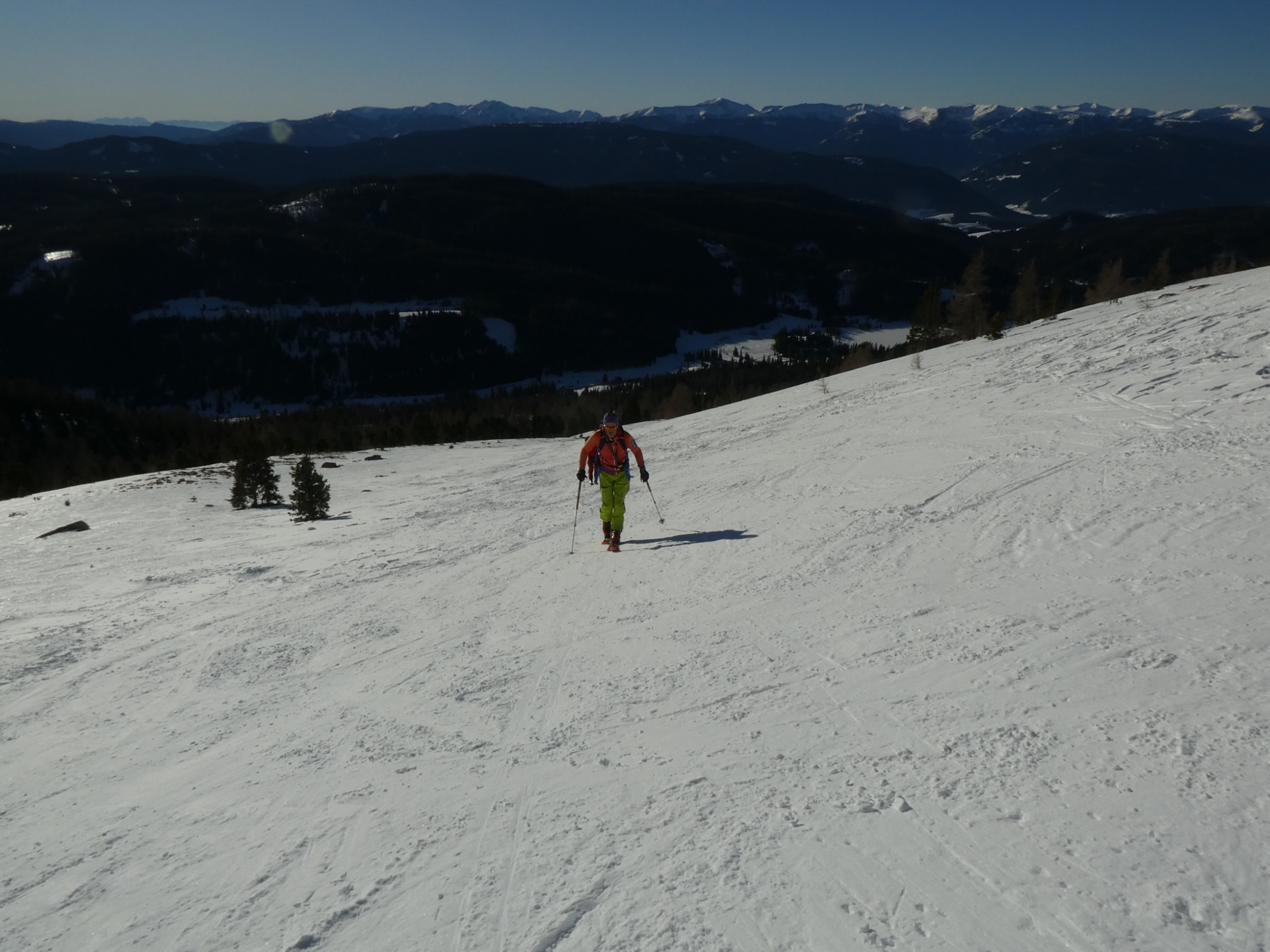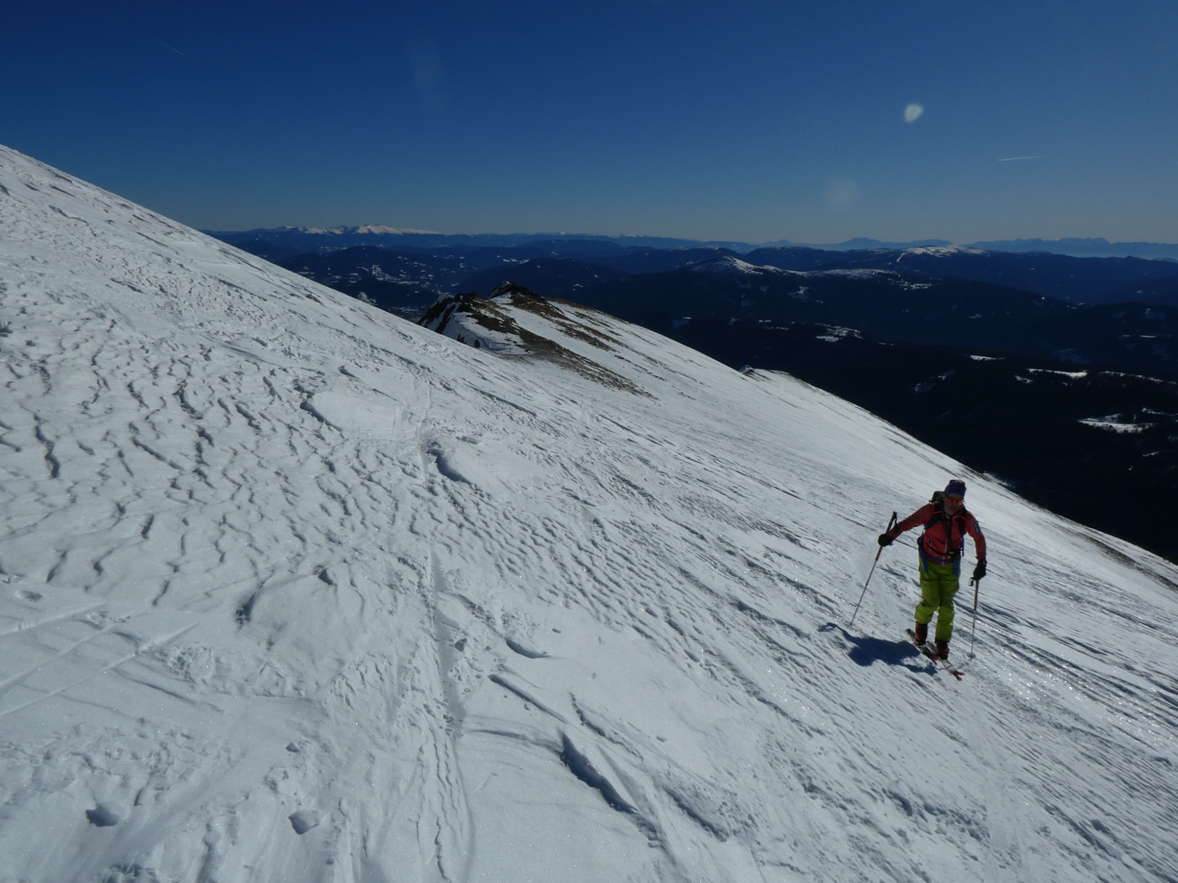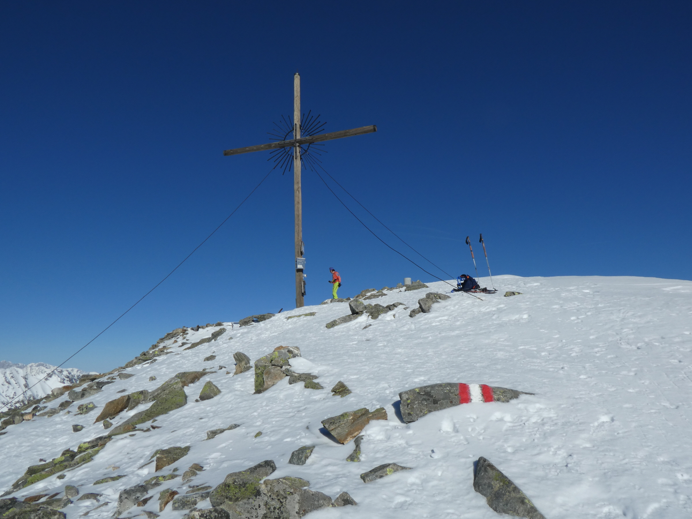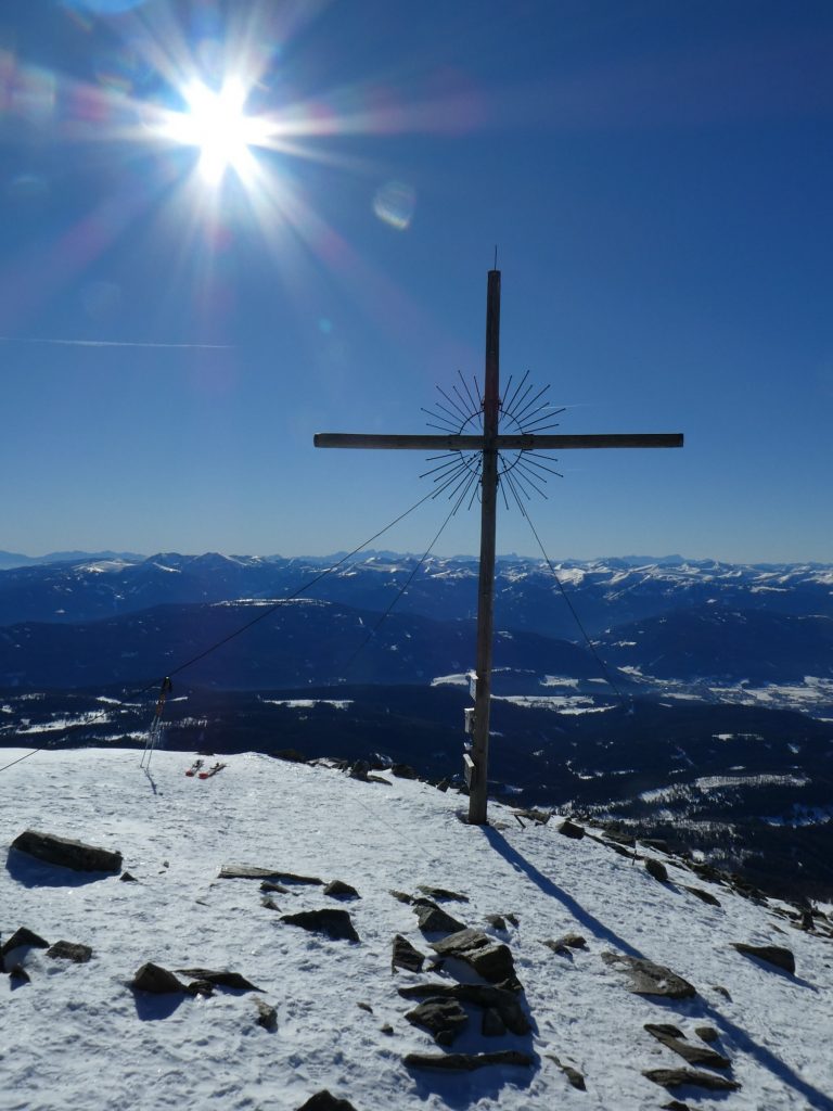 Nach ziemlich genau 3 Stunden Aufstiegszeit (einschl. Pause) waren wir am zweithöchsten Punkt der Krakau. Bei Windstille haben wir den Gipfelaufenthalt zelebriert und die Fernsicht über hunderte von Kilometern genossen. Viele bereits bestiegene, aber auch weitere noch geplante Tourenziele sind dabei ins Blickfeld gerückt.