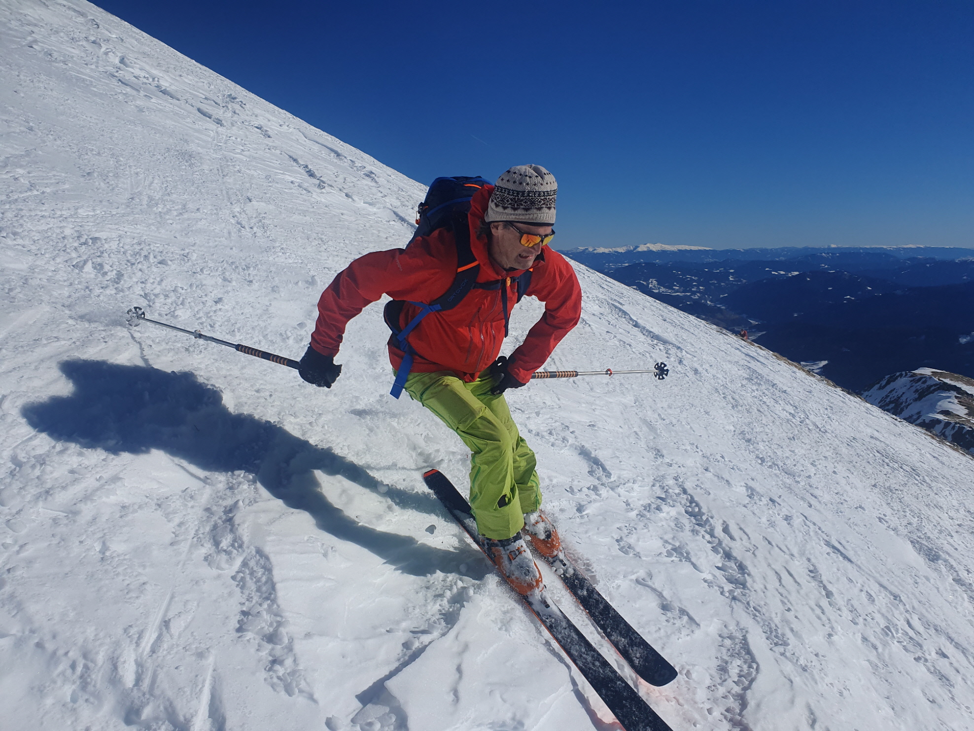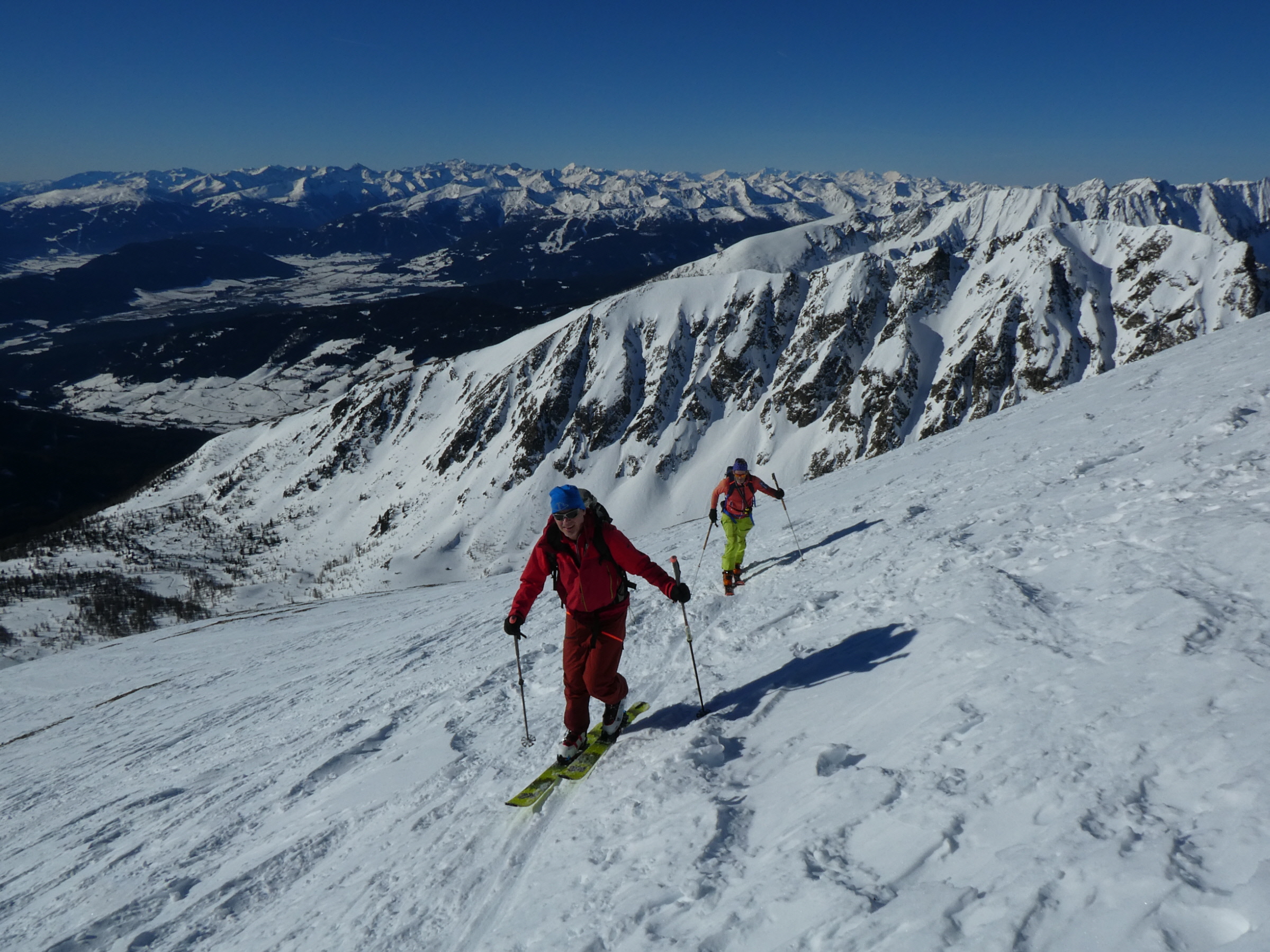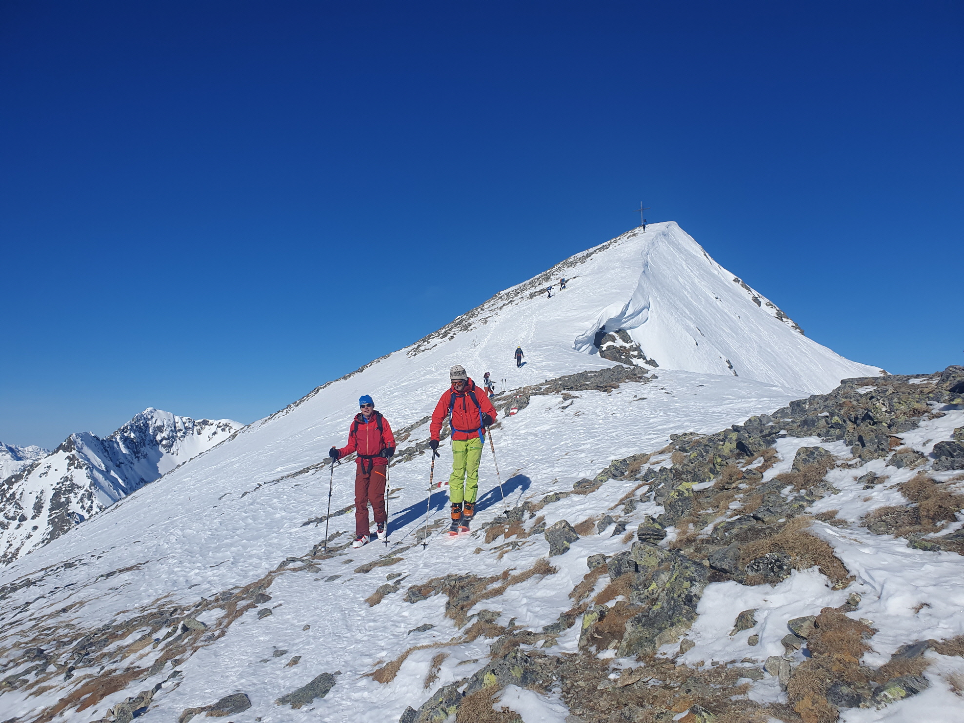 Nach ziemlich genau 3 Stunden Aufstiegszeit (einschl. Pause) waren wir am zweithöchsten Punkt der Krakau. Bei Windstille haben wir den Gipfelaufenthalt zelebriert und die Fernsicht über hunderte von Kilometern genossen. Viele bereits bestiegene, aber auch weitere noch geplante Tourenziele sind dabei ins Blickfeld gerückt.