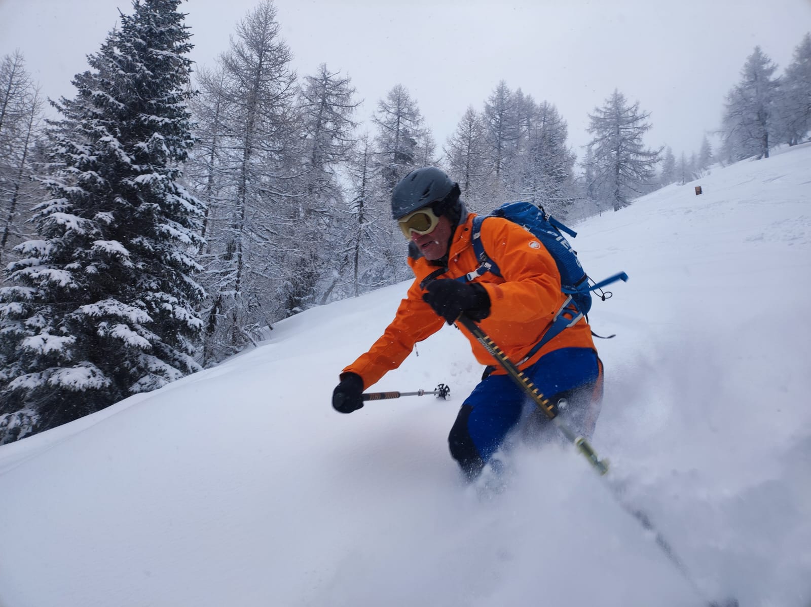 Dann haben wir es zum ersten Mal stauben lassen und sind sehr genussvoll abgefahren. Vorbei an einigen in unserer Spur Aufsteigenden haben wir die zuvor mit Schweißfluss erarbeitete Höhe hinunter zur Hochalm in kürzester Zeit wieder abgebaut.