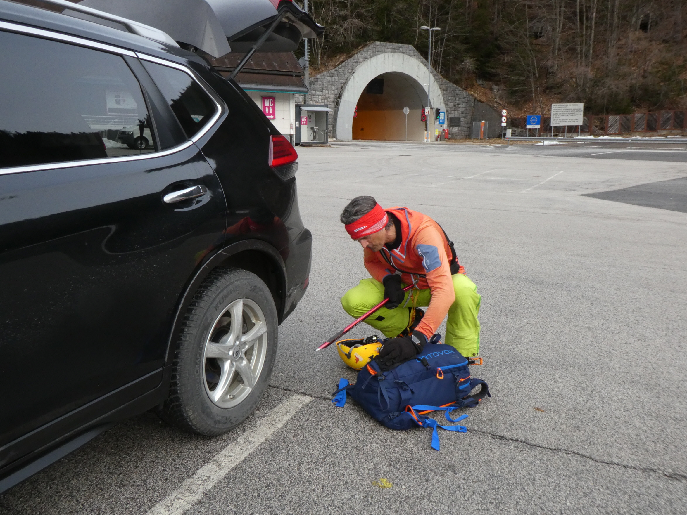 Für den Norden und Osten der Republik war Sturm in Orkanstärke prognostiziert. Der Süden hingegen war laut Wettervorhersage begünstigt, der Wind sollte sich dort jedenfalls in Grenzen halten. Bei dieser Prognose war die Wahl des Tourenregion keine große Angelegenheit. Weil wir jedenfalls über eine aufgefirnte Südseite abfahren wollten, kamen nur wenige Berge in die engere Auswahl. Wir haben uns für die Vertatscha entschieden und unseren Ausgangspunkt beim Südportal des Loibltunnnels auf slowenischer Seite gewählt.