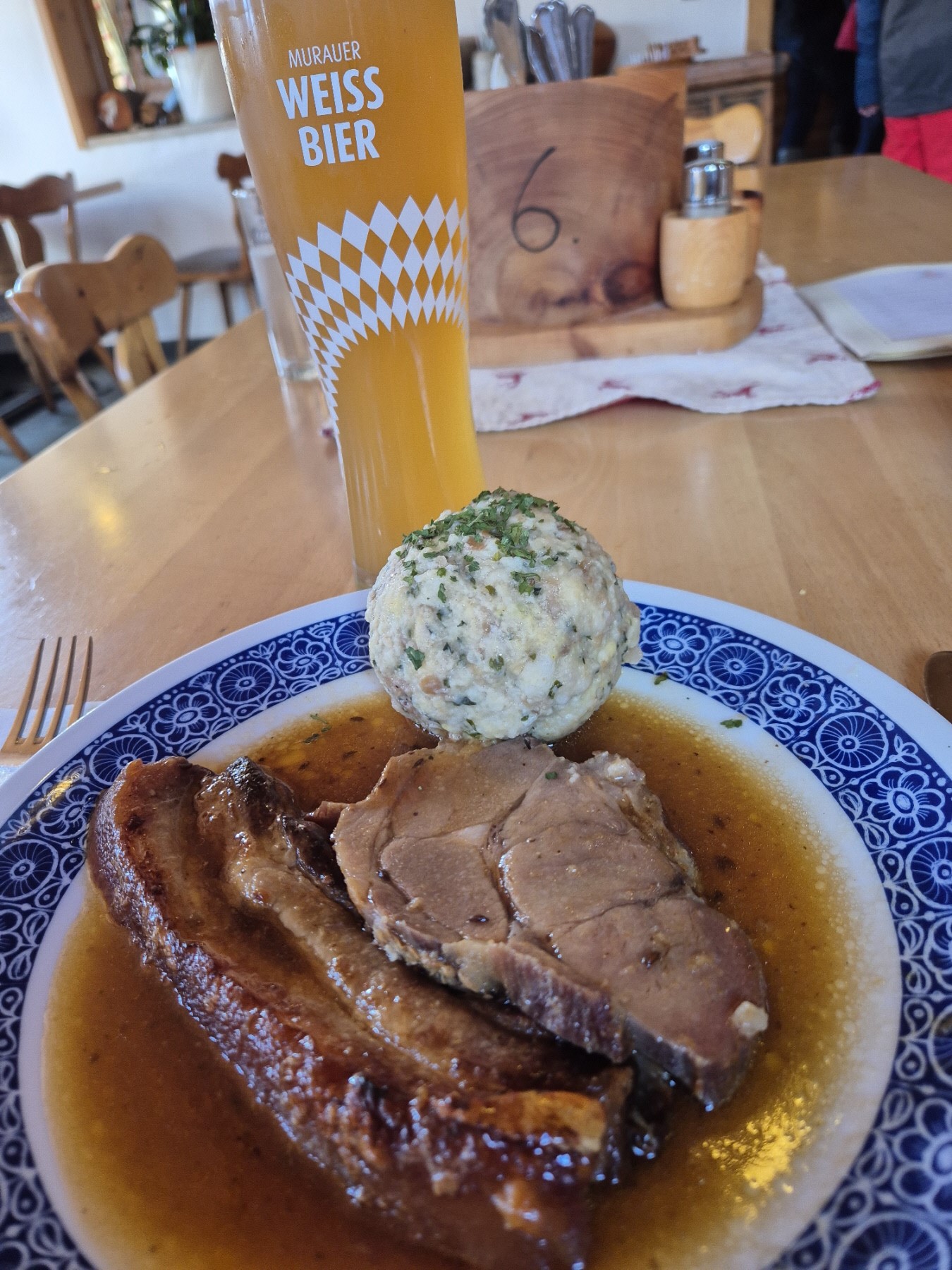 Zurück in der Krakau habe ich nach dem Friedhof noch meine Lieben auf der Piste besucht und den Enkelbuben bei ihren wilden Ritten und Sprüngen ein bisserl zugeschaut. Und eingekehrt bin ich natürlich auch noch. Der Heinrich wird mich bei unserem nächsten Treffen sicher zur Speisenauswahl beglückwünschen. Der knusprige Schweinsbraten mit dem fluffigen Knödel nach der Suppe hat sicher mehr als die auf der Tour verbrannte Energie wieder zugeführt.